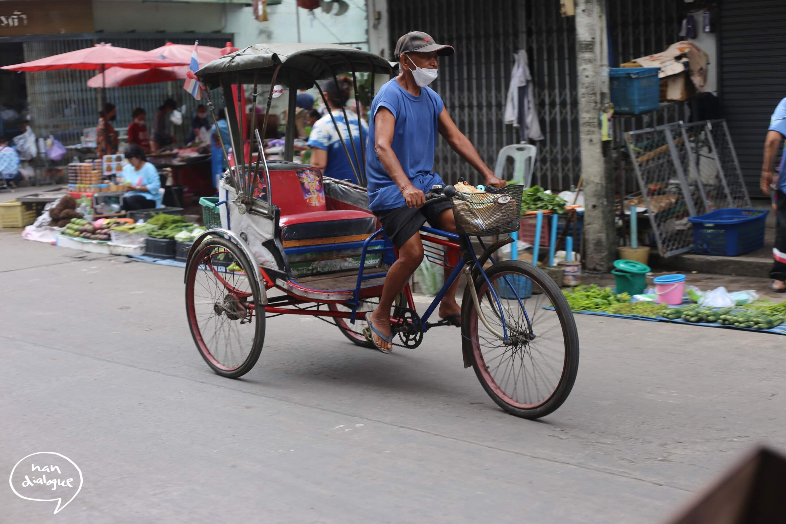 “ทำอะไรก็ไม่ได้เรื่อง ซื้อขาย ก็เจ๊ง ผมเป็นช่างซ่อมจักรยานด้วย ใครมาซื้อก็ขาย ซื้อรถเก่ามาซ่อม สามล้อเมื่อก่อนราคาสี่พันกว่า เดี๋ยวนี้หมื่นสี่หมื่นห้า อย่างคันนี้ เขามาขอซื้อ ผมไม่ขาย เมืองน่านเหลือไม่กี่คันแล้ว ที่เขายังขี่ทำมาหากินอยู่ น่าจะแค่สี่ห้าคัน เมื่อก่อนสี่ห้าสิบคัน หายไปบ้าง ตายไปบ้าง ..ผมทำทุกอย่าง มันไม่ได้ผล ทุกวันนี้เลยอยู่กับสามล้อ เลี้ยงลูกหลาน ซื้อที่ แปงบ้านมาได้ด้วยการขี่สามล้อ ทำอาชีพอื่นไม่ได้เรื่องเลย”
