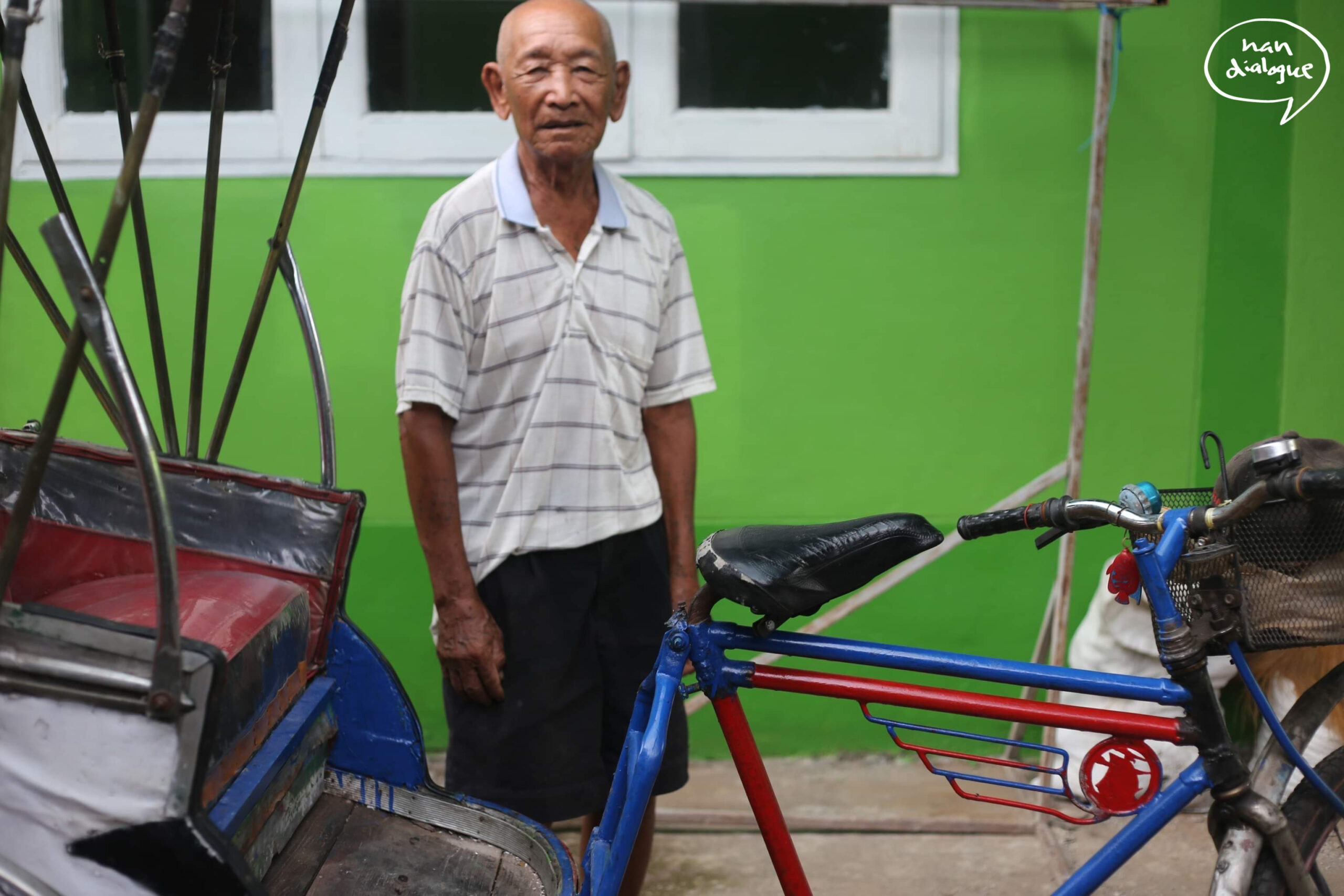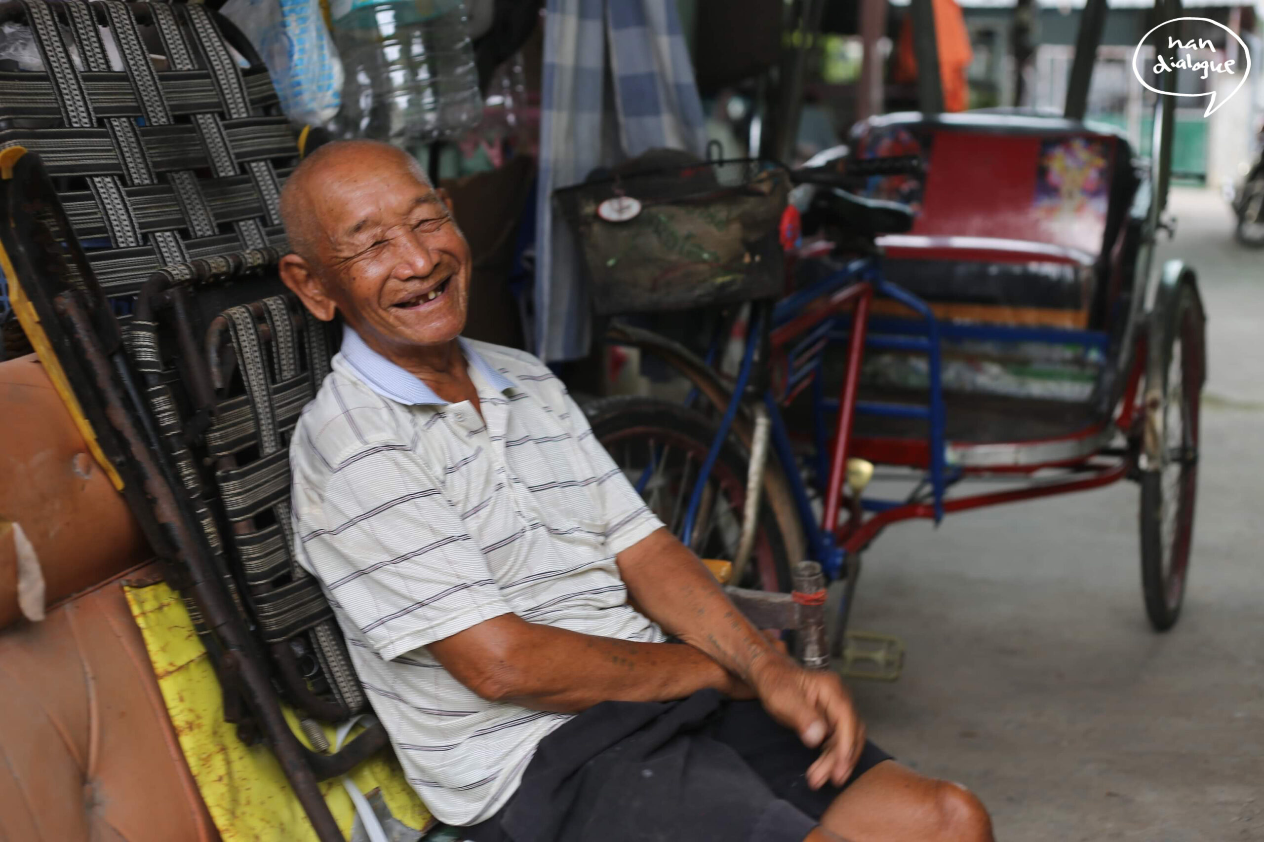 “ไม่น้อยใจ เพราะผมทำมาหมดแล้ว มันไม่ได้ผล มีแต่สามล้อนี่แหละที่หาเงินเลี้ยงลูกหลานมาได้ ผมเคยหนีมันไปสองสามครั้ง เลิก ไปซื้อตุ๊กตุ๊กมาขับ เลิก หารถสองแถวมาขับ มันไม่ได้เรื่อง ชีวิตทุกอย่างมาได้กับสามล้อ ก็อยากเก็บมันไว้ เขาถามซื้อก็ไม่ขาย กะว่าจะเอาจนตายจากกันไป ถีบไม่ได้ก็จะจอดไว้ที่บ้านแบบนี้”