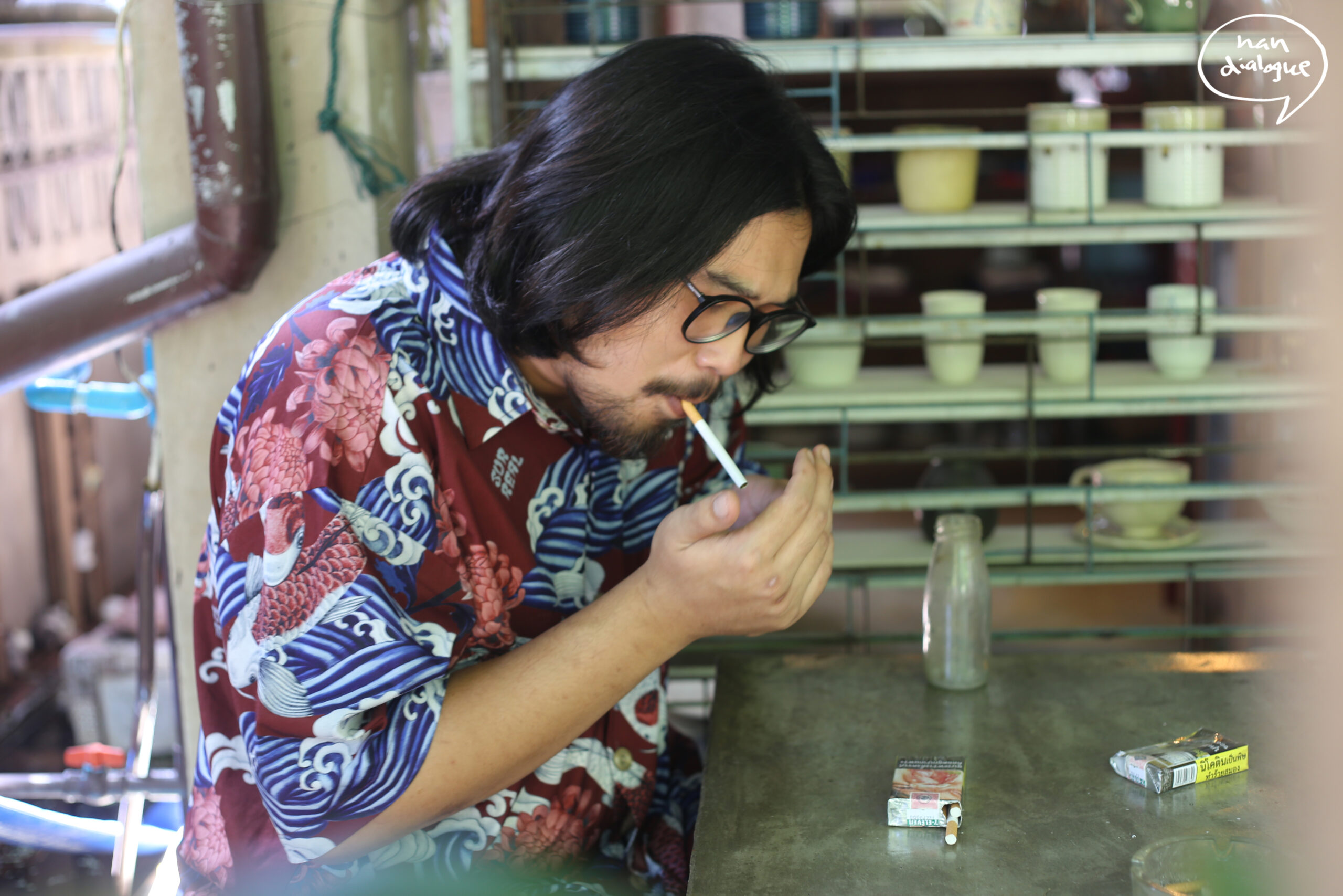 บ้านเราทำอาหารอยู่แล้ว ข้าวมันไก่ได้ ขายข้าวมันไก่ การทำอาหารคือความสุขตอนอยู่ในครัวนะ แต่ไม่ใช่ทุกอย่าง ไก่ต้ม ไก่ทอด ไก่กรอบ ไก่ราดซอสเขียวหวาน ขายดี แต่เหนื่อย ตีสามตีสี่ไปเอาไก่ นั่งปั่นน้ำจิ้ม ปอกกระเทียม สนุกดี อารมณ์เปิดร้านบังหน้า เกิดเครือข่าย เฟซบุ๊กยังไม่ได้ยืนยันตัวตน ผมก็จะล่าลูกค้า เอากัญชามาทีละลูกหนึ่งกิโลฯ เราก็แบ่งเพื่อน ขายสามสี่ร้อย สต็อกของยี่สิบสามสิบกิโลฯ เก็บเป็นก้อน ชีวิตเริ่มพังตั้งเเต่ช่วงนั้น ตอนนั้นมีแฟนคนแรกเป็นสาวประเภทสอง เป็นความรักจบลงเพราะเรื่องเฮโรอีน แฟนก็ติดเฮโรอีน ทะเลาะกันรุนแรง อกหักแล้วรักพังมาก ล่มสลายพร้อมกับร้านข้าวมันไก่ โดนจับสองครั้ง ตำรวจลงกัญชา เรียกว่ารวยแล้วเลิก