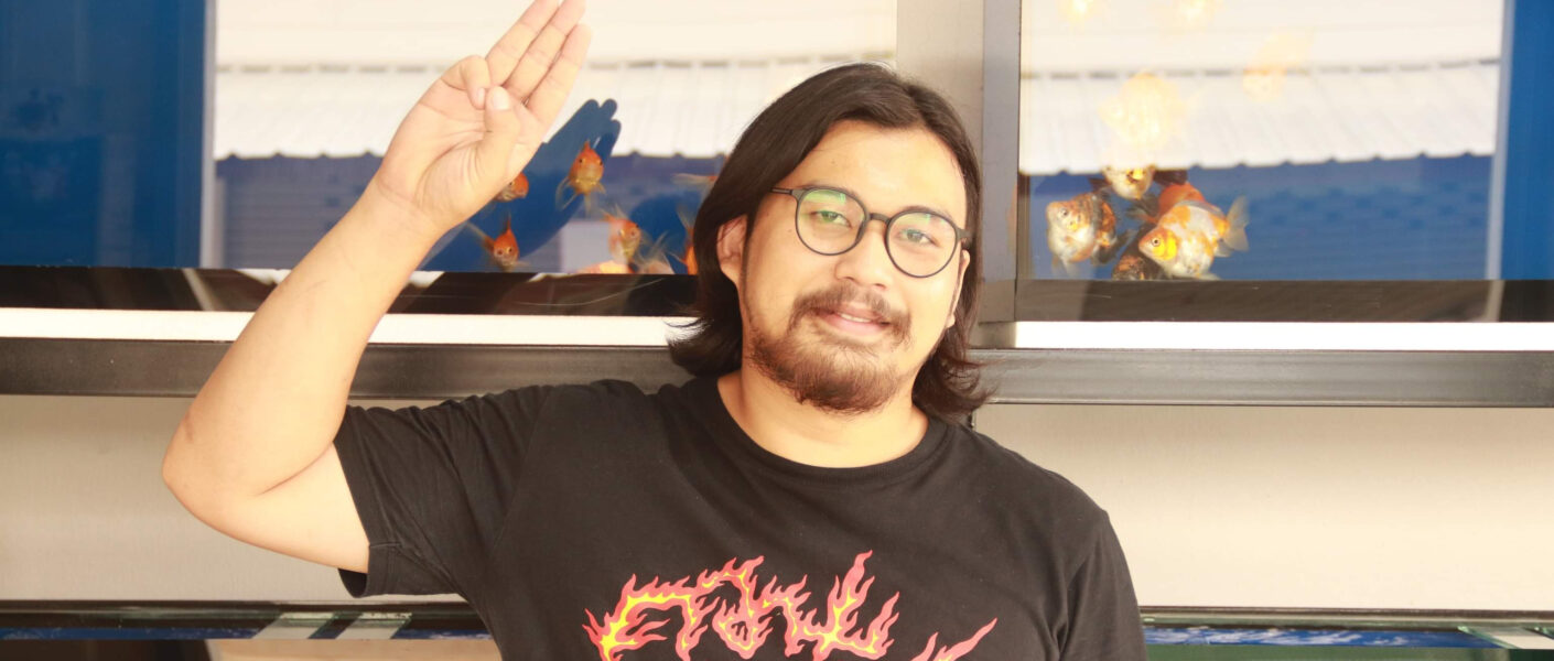 ไปเดินงานไม้ดอก เจอร้านป้ายยา ปลาทองสองสามตัว ตู้พันสี่ ปลาทองตัวละร้อยกว่าบาท เอามาเลี้ยงในแฟลตแพทย์ ห้องเล็กๆ ห้องโอม เป็นปลากระแสปลาทองห้าสี ปี 2019 ก่อนโควิด ก่อนม็อบคณะราษฎร เข้าถึงแหล่งปลา ปลาเอามาขุนให้อาหาร แล้วก็ขาย เป็นปลากระแส เราเข้าถึงราคา รับมา 15 บาท ราคาตลาด 120 เราซื้อมาเป็นร้อยตัว